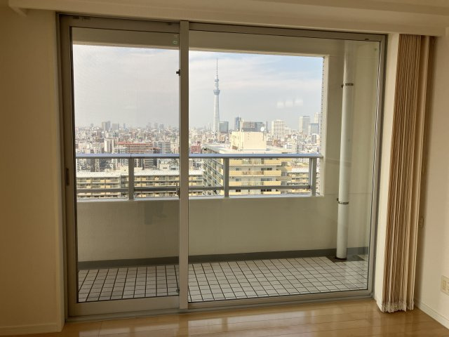 スカイツリーが見えます。また、夏には隅田川花火大会が一部見えます。(今後の周辺建築状況によっては見えなくなる可能性もあります。)